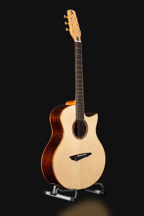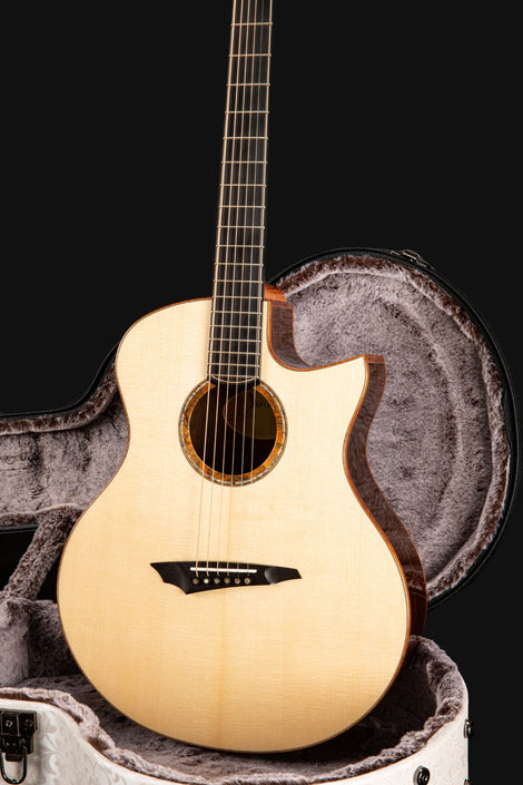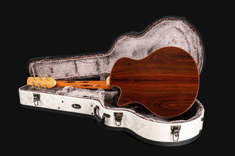 All guitars come with a premium fitted case, included in the price. You can also add inlays, fanfret, armrest and a pickup by adding customization options to your cart.