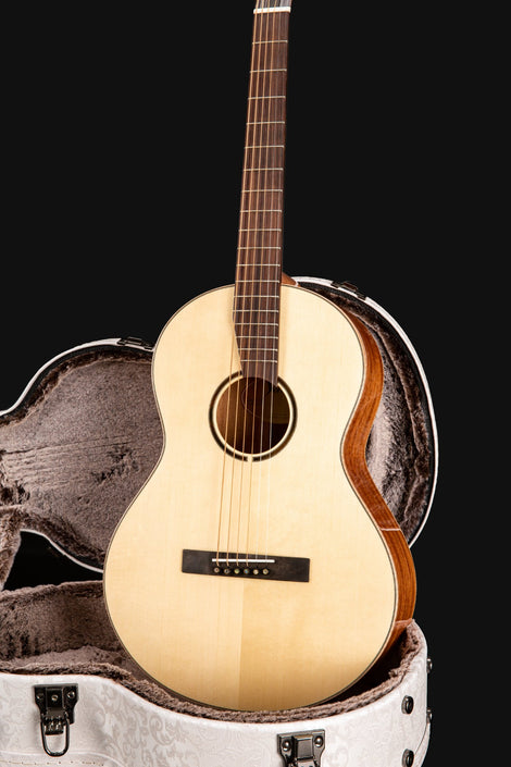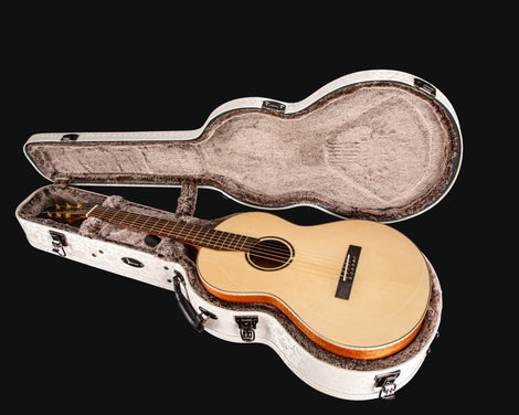 All guitars come with a premium fitted case, included in the price. You can also add inlays, fanfret, armrest and a pickup by adding customization options to your cart.