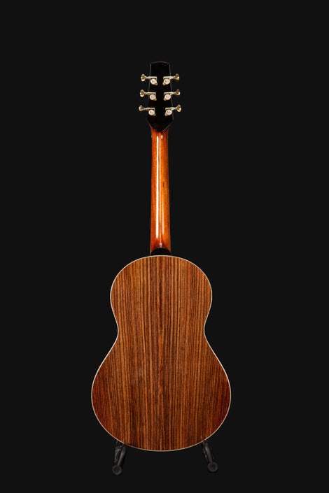 All guitars come with a premium fitted case, included in the price. You can also add inlays, fanfret, armrest and a pickup by adding customization options to your cart.